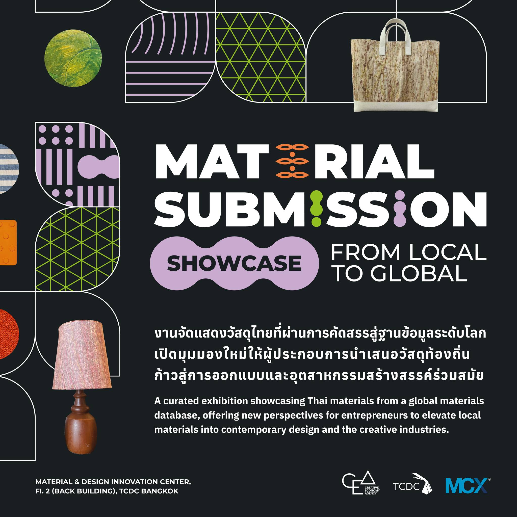 This exhibition brings together groups of Thai creative material entrepreneurs who transform local resources and integrate them with modern innovations.