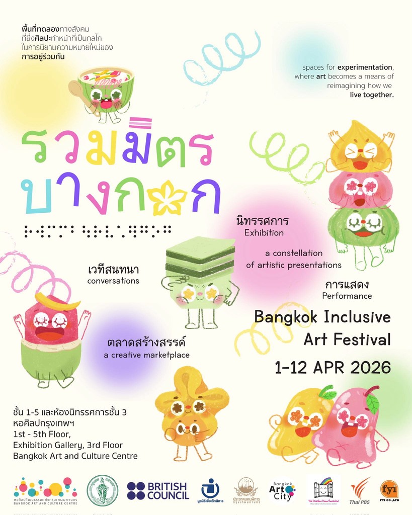 Bangkok Inclusive Art Festival : 1 April – 12 April, 2026 At the Hall, 1 Floor, the Curved Wall 5th – 3rd Floor, and Exhibition Gallery, 3rd Floor, Bangkok Art and Culture Centre