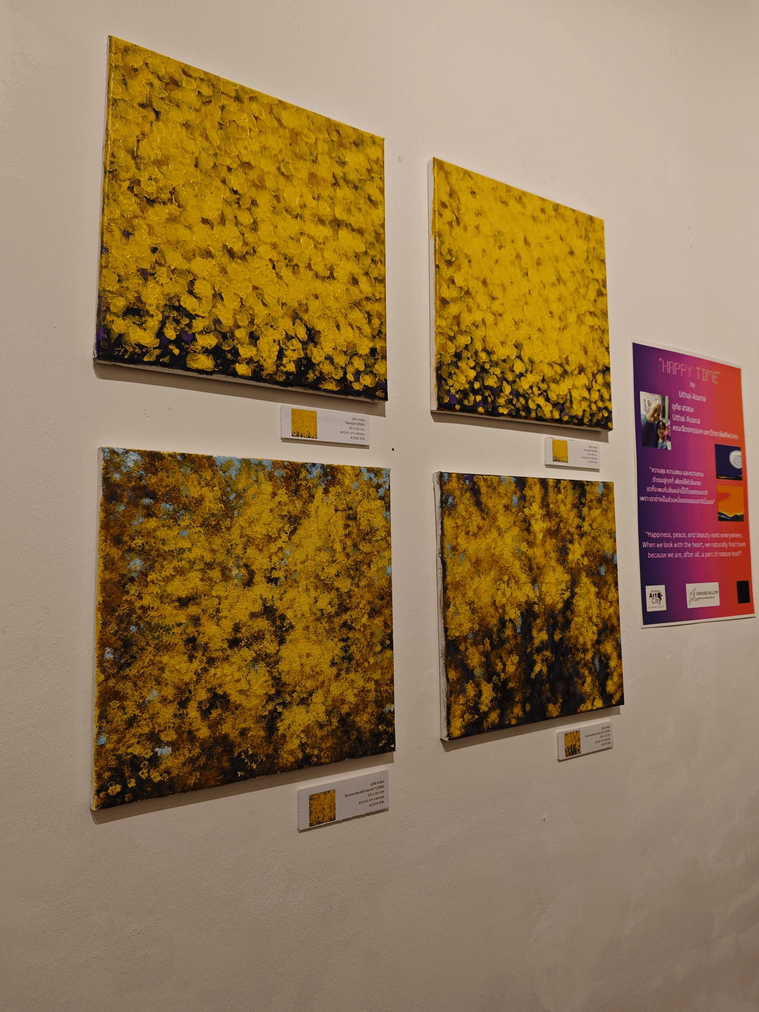 You are warmly invited to experience a variety of joyful moments at “Happy Time”, a group exhibition by five artists who each interpret “happiness” through their own unique perspectives. The show brings together delicate and heartwarming woodcarvings, vibrant and imaginative paintings, as well as works that explore happiness through life, memories, and dreams in diverse forms.