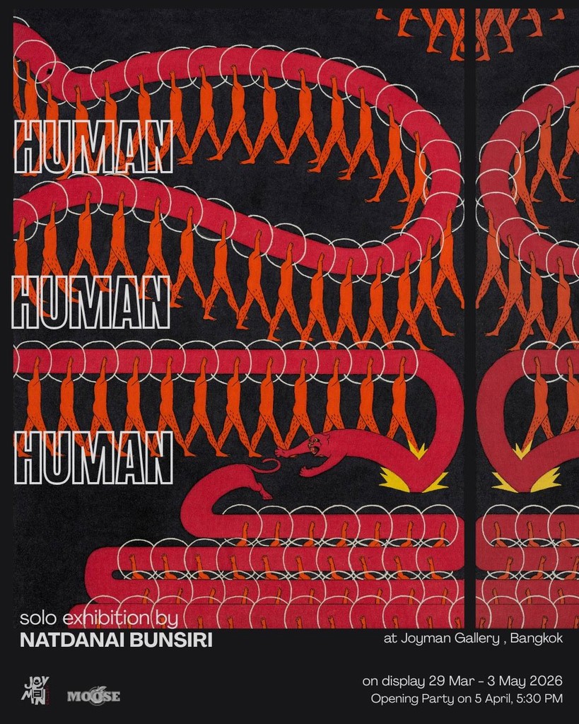 HUMAN HUMAN HUMAN a solo exhibition by Natdanai Bunsiri will be on view from March 29 – May 3, 2026, on the 1st Floor of Joyman Gallery, Bangkok.