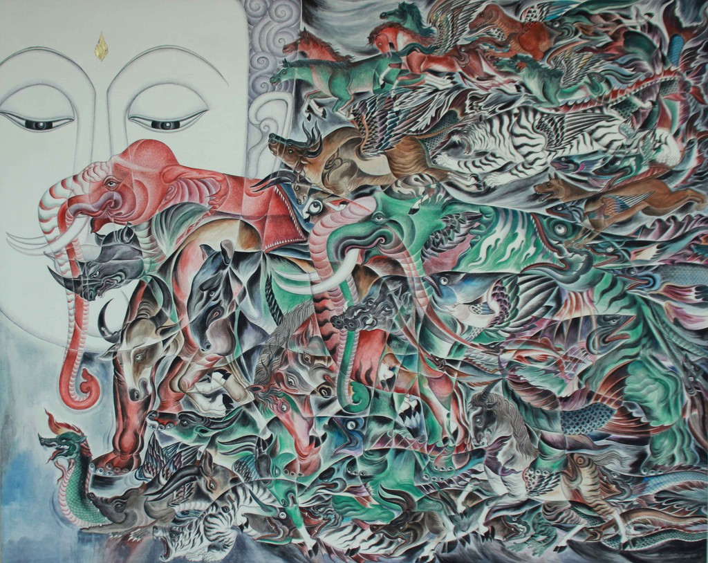 The Fourth Decade of the Bualuang Paintings Exhibition features works by 52 artists who previously won awards in the 31st to 40th Bualuang Paintings Contest between 2009 and 2018, alongside new works, totaling 141 pieces.