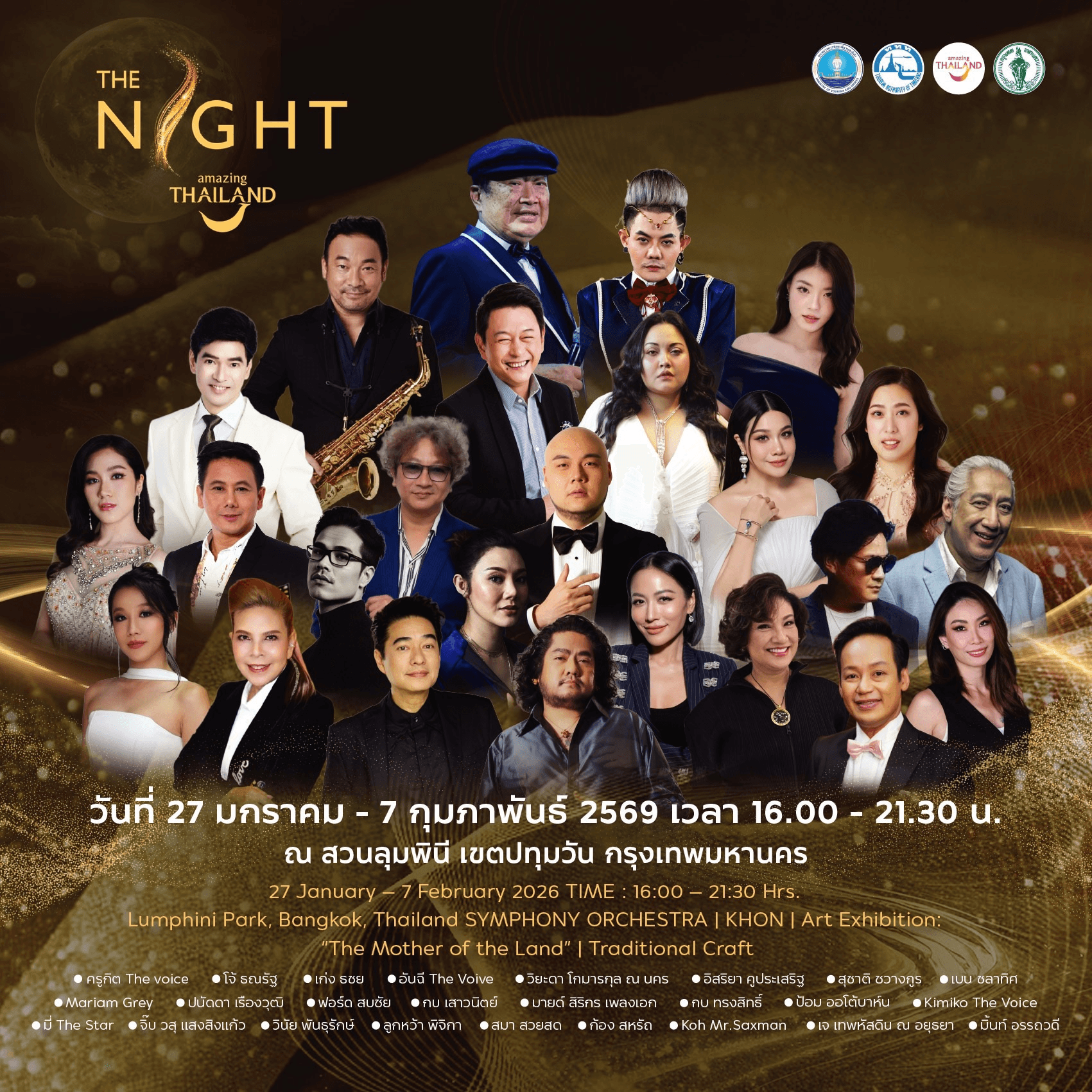 Enjoy a night of beauty and happiness, celebrating art and culture in honor of Her Majesty Queen Sirikit, The Queen Mother. January 27 - February 7, 2026, 4:00 PM - 9:30 PM at Lumphini Park, Bangkok.