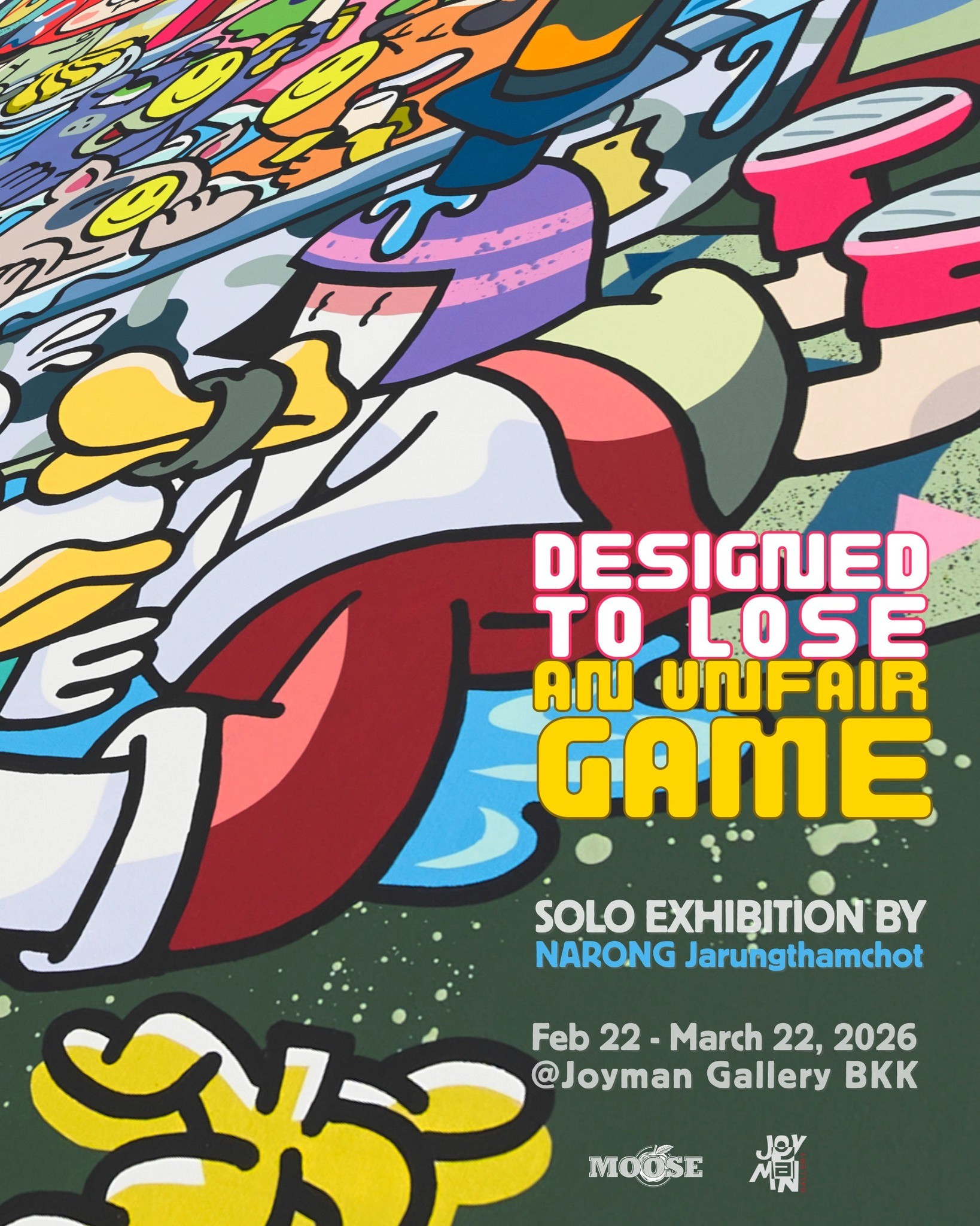 ตลอด 3 ทศวรรษนับแต่ปี พ.ศ. 2537 ชื่อของ ณรงค์ จรุงธรรมโชติ หรือ “ขวด ขายหัวเราะ” คือผู้บันทึกพงศาวดารฉบับประชาชนผ่านการ์ตูนการเมืองในหน้าหนังสือพิมพ์รายวัน เขาหยอกล้ออำนาจด้วยลายเส้นคมคายที่ผู้คนจดจำ ทว่าในวันที่สังคมไทยเผชิญกับความเหลื่อมล้ำที่หยั่งรากลึกและการถ่ายโอนอำนาจผ่านระบบผูกขาด "ขวด" ได้ก้าวข้ามกรอบช่องสี่เหลี่ยมของการ์ตูนรายวัน สู่การสร้างสรรค์จิตรกรรมชุดใหญ่ในนิทรรศการเดี่ยวครั้งนี้ 𝗗𝗘𝗦𝗜𝗚𝗡𝗘𝗗 𝗧𝗢 𝗟𝗢𝗦𝗘 : 𝗔𝗡 𝗨𝗡𝗙𝗔𝗜𝗥 𝗚𝗔𝗠𝗘