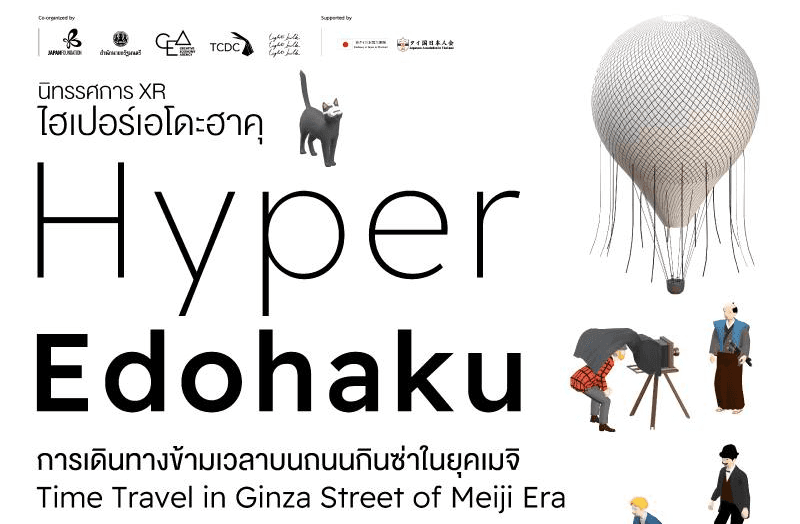 เจแปนฟาวเดชั่น กรุงเทพฯ ร่วมกับ สำนักงานส่งเสริมเศรษฐกิจสร้างสรรค์ (องค์การมหาชน) และอาร์ตสเปซ Light Bulb Art and Creative Hub มีความยินดีในการร่วมจัดนิทรรศการสัญจรสุดล้ำสมัยใหม่ “ไฮเปอร์เอโดะฮาคุ-การเดินทางข้ามเวลาบนถนนกินซ่าในยุคเมจิ” ผ่านเทคโนโลยีเสมือนจริง (XR -Extended Reality) ที่ออกแบบและจัดทำโดย พิพิธภัณฑ์มหานครโตเกียว เอโดะ - โตเกียว เปิดโอกาสให้ผู้เข้าชมได้เรียนรู้วิถีชีวิตและวัฒนธรรมญี่ปุ่นในสมัยเมจิได้อย่างมีชีวิตชีวา โดยไม่เสียค่าใช้จ่าย