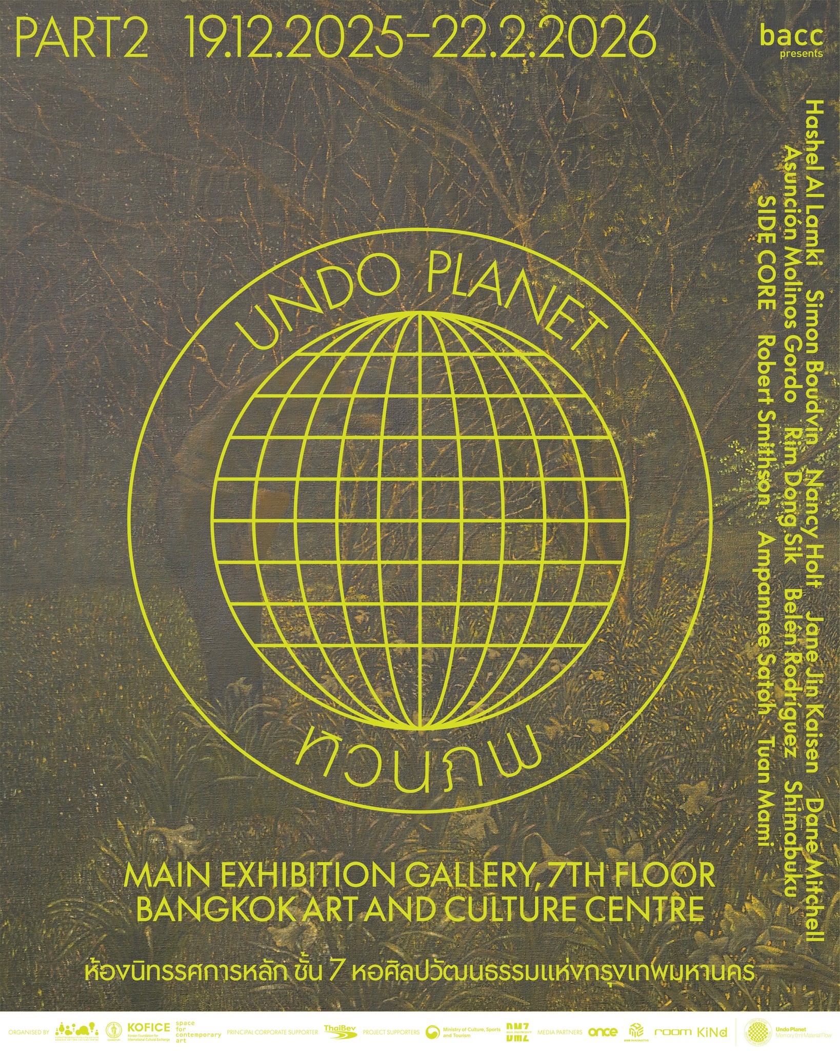 หอศิลปวัฒนธรรมแห่งกรุงเทพมหานคร (BACC) ร่วมกับ สเปซ ฟอร์ คอนเทมโพรารี อาร์ต (Space for Contemporary Art) และ มูลนิธิเกาหลีเพื่อการแลกเปลี่ยนวัฒนธรรมระหว่างประเทศ (Korean Foundation for International Cultural Exchange) นำเสนอนิทรรศการนานาชาติ Undo Planet นิทรรศการที่ใช้ศิลปะเป็นสื่อในการสำรวจความเป็นไปได้ในการฟื้นฟูธรรมชาติ ศิลปินผู้เข้าร่วมสะท้อนและตั้งคำถามต่อความท้าทายจากการเปลี่ยนแปลงสภาพภูมิอากาศโลก พร้อมทั้งนำเสนอแนวทางที่หลากหลายเพื่อเยียวยาโลกของเราที่กำลังเผชิญวิกฤต